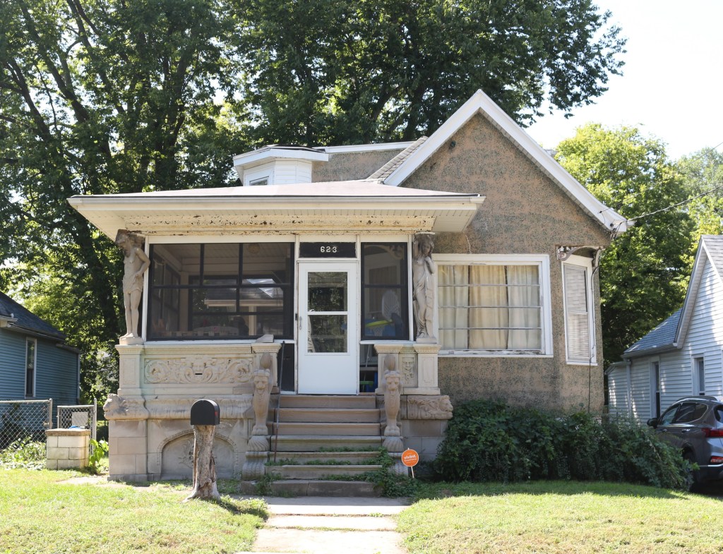 One of his sons, Clyde, followed in Joseph’s footsteps, and the two of them carved some intricate statues for their own home in Peoria. One porch support depicted a man holding up his loin cloth. Typically, male supports were referred to as Atlas figures and were popular in Classical and Baroque Architecture. The porch also had two female figures holding up the front porch. Columns that were personified as females are referred to as caryatids and common in Greek architecture.