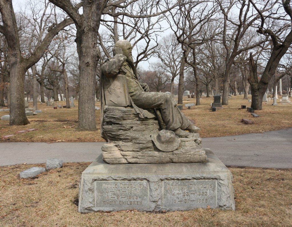 Leonard Wells Volk was an artist most noted for the live mask he made of Lincoln’s face and hands shortly before Lincoln was elected president.  Ironically enough, Volk’s patron was Stephen Douglas, who was Lincoln’s political revival.  Stephen Douglas was a first cousin to Emily Volk, Leonard’s wife.  Douglas paid for Volk to study sculpture in Italy and later supported him when he opened a small studio in Chicago.