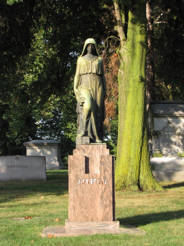 In addition to her public works, Walker, like most sculptors at the time, took private commissions which were often funerary monuments like the shrouded figure bronze statue she created for Milton T. Barlow of Omaha, Nebraska.