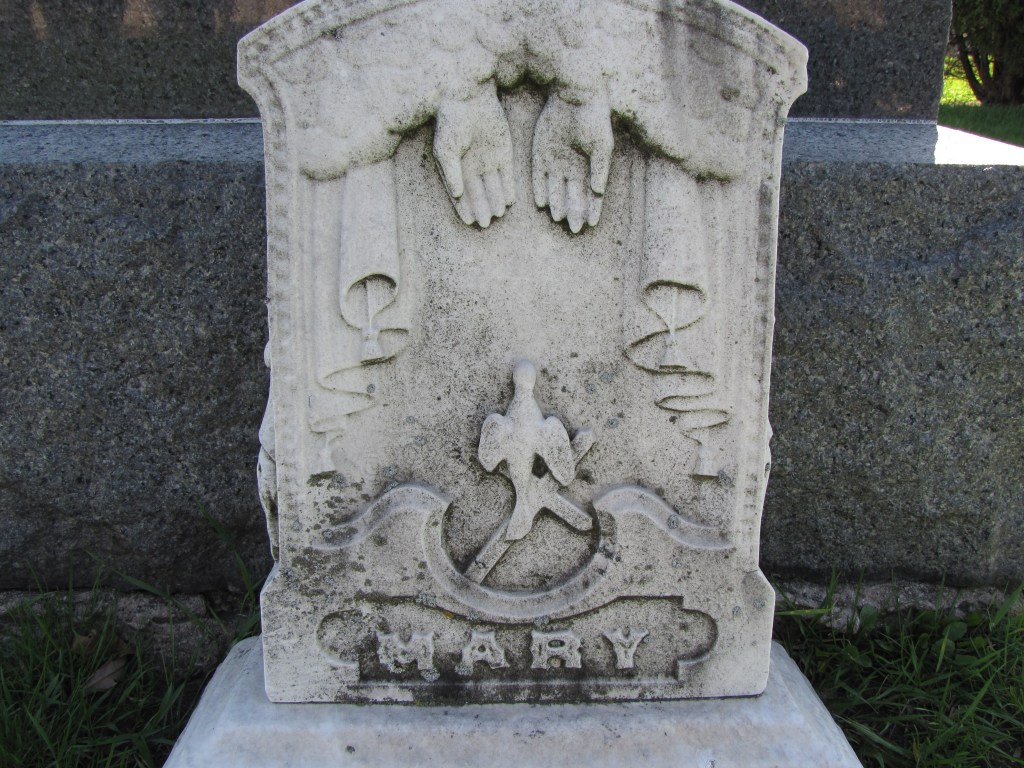 Mary Crawford’s white marble tombstone in the Calvary Cemetery at Evanston, Illinois, is a Victorian mélange of symbolism, typical for the age. The Victorians knew how to do funerals and all things death.