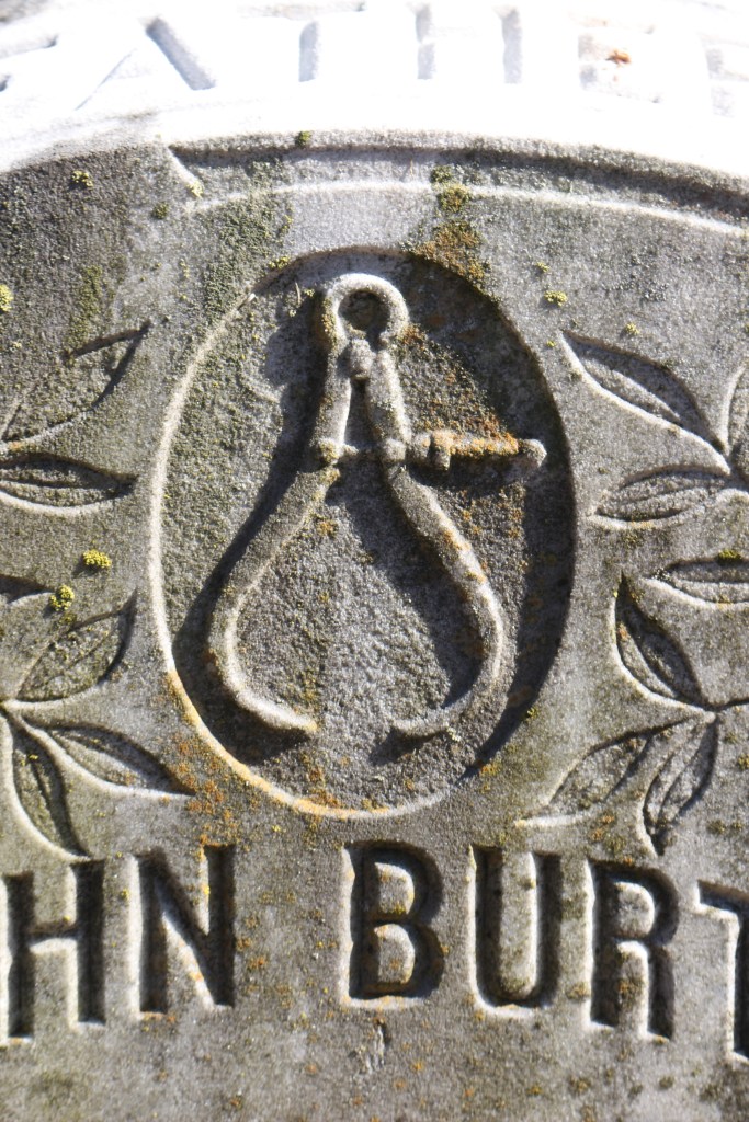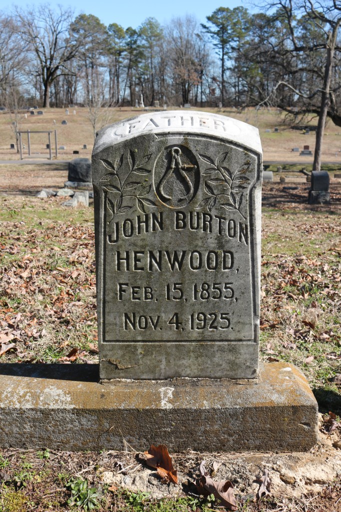 The white marble segmented-top gravestone of John Burton Henwood in the Oakland Cemetery in Little Rock, Arkansas, displays a caliper. Perhaps this is a nod to his profession–but what profession would that be? Any help?