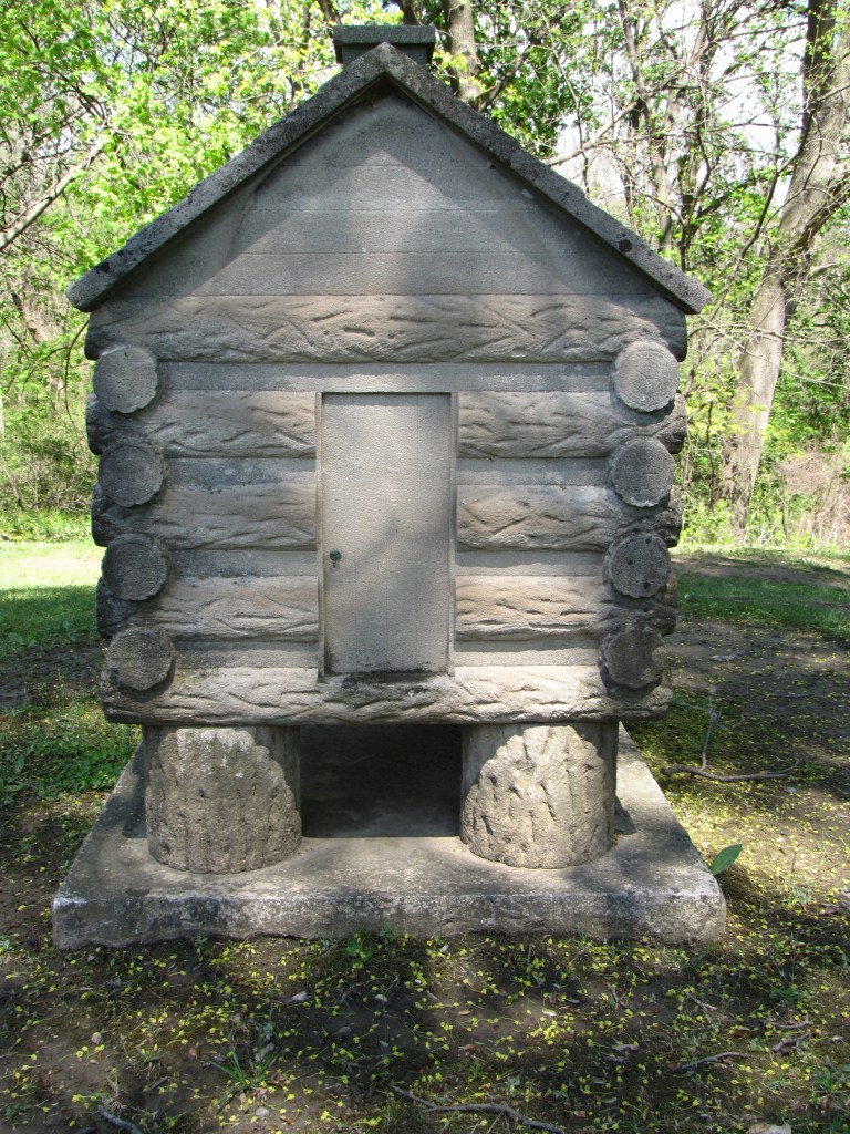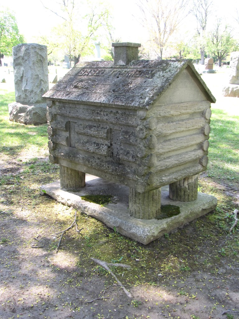 The most important symbol is the gravestone itself—the Log Cabin. The Log Cabin pays tribute to the fact that he was a pioneer of the Maumee Valley.