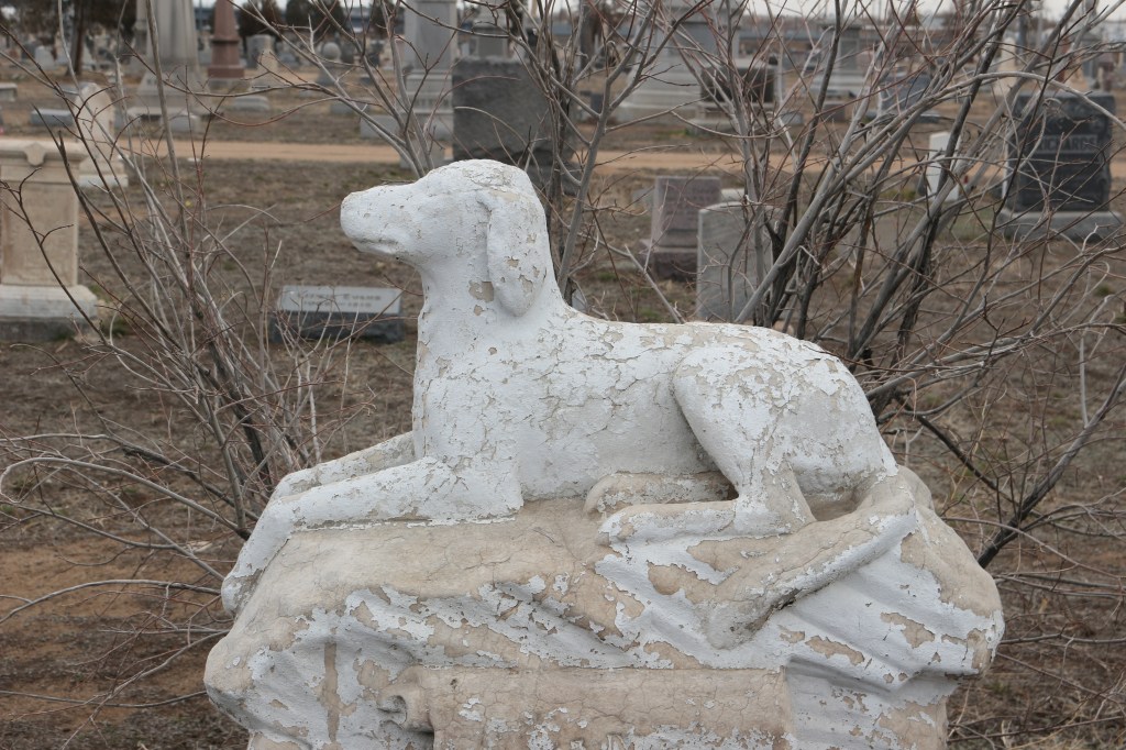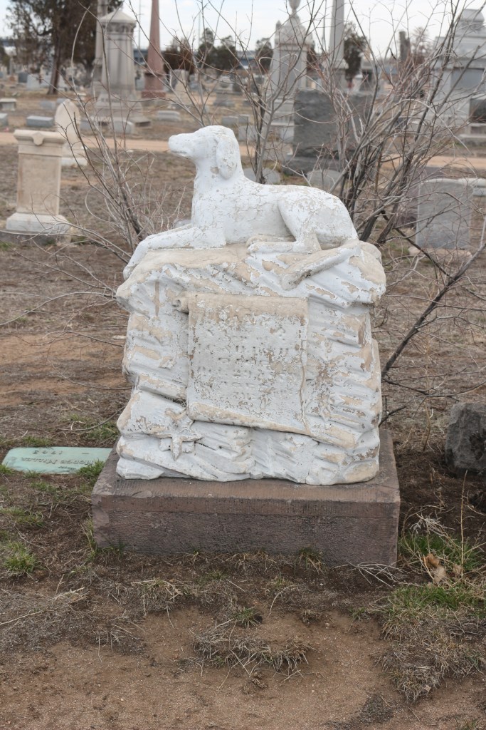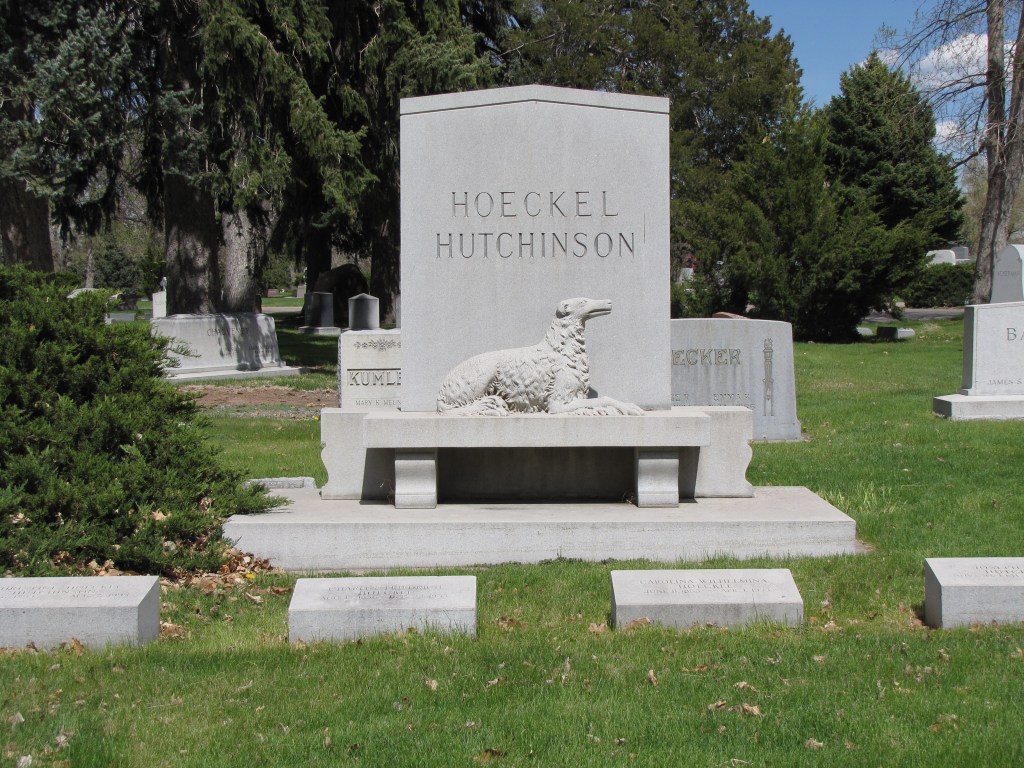 While the Fairmont trustees may have thought the Shy Memorial vulgar, Riverside had the last laugh when the Hoeckel-Hutchinson family erected a monument featuring a dog no less in the Fairmont Cemetery!