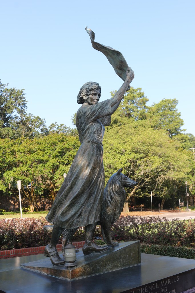 Felix De Weldon, famous for his statue of the raising of the flag on Iwo Jima statue in Washington, D.C., was commissioned to create the bronze statue of Florence Martus. The statue was erected on the east end of River Street in Savannah not in remembrance of her lost love, but her devotion to greeting the passing ships for over four decades.