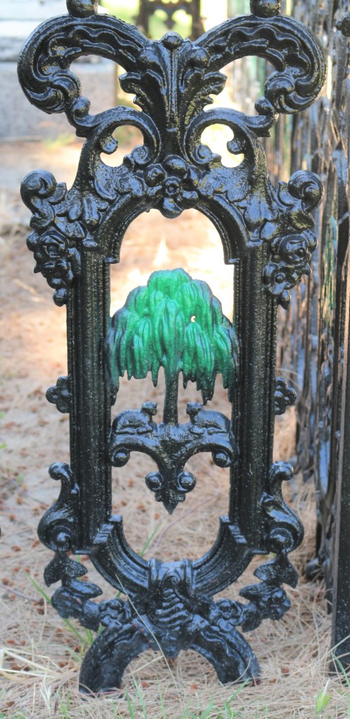 The willow as a symbol is sentimental and hints at the human emotions felt during grief. The willow motif represents what one might expect; sorrow and grief, it is after all a “weeping” willow. This symbol is found on many gravestones and can be found carved in a variety of styles. Not only does it appear on tombstones, but can also be found in the iron fences and gates surrounding plots–as does this willow shading two lambs in the Old City Cemetery in Sacramento, California.