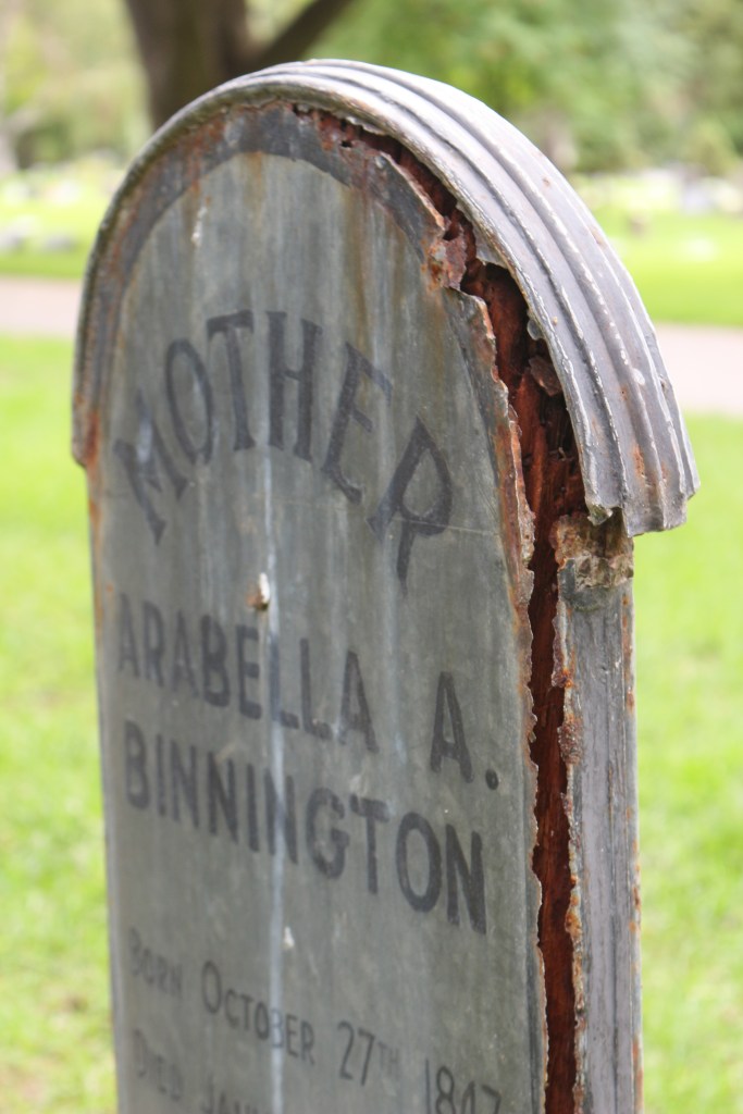 Grave markers are made of many different materials—stone, zinc, wood, iron, bronze, and even steel as is this marker in the Rosehill Cemetery at Idaho Falls, Idaho.