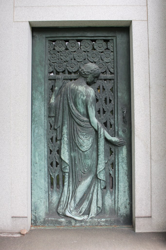 The door as a motif in funerary art symbolizes mystery. The door is the portal from the Earthly realm to the next. In Christianity, the door is usually viewed with hope, charity, and faith. The next life in the hereafter will be better than the one experienced here on Earth.