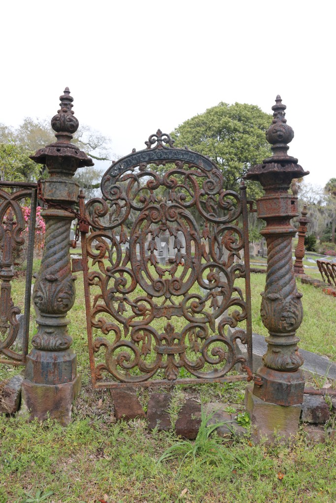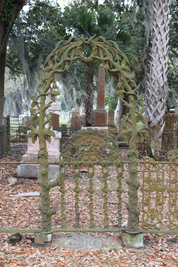 Even the iron gates and fencing around the cemetery were imbued with a power—the power to keep the malevolent spirits such as ghosts, fairies, and witches at bay. It was thought that iron had a supernatural power. Hence a horseshoe nailed to a door was thought to be a talisman protecting those inside and repelling evil spirits. Burying an iron knife in front of the threshold to your home was believed to ward off witches from coming in. And the iron fencing around a cemetery was believed to contain the souls of the dead. The magical powers of the gate and fencing are also found surrounding family plots. It was thought that once the gate was closed the spirits could not follow you home! Keep those gates closed!