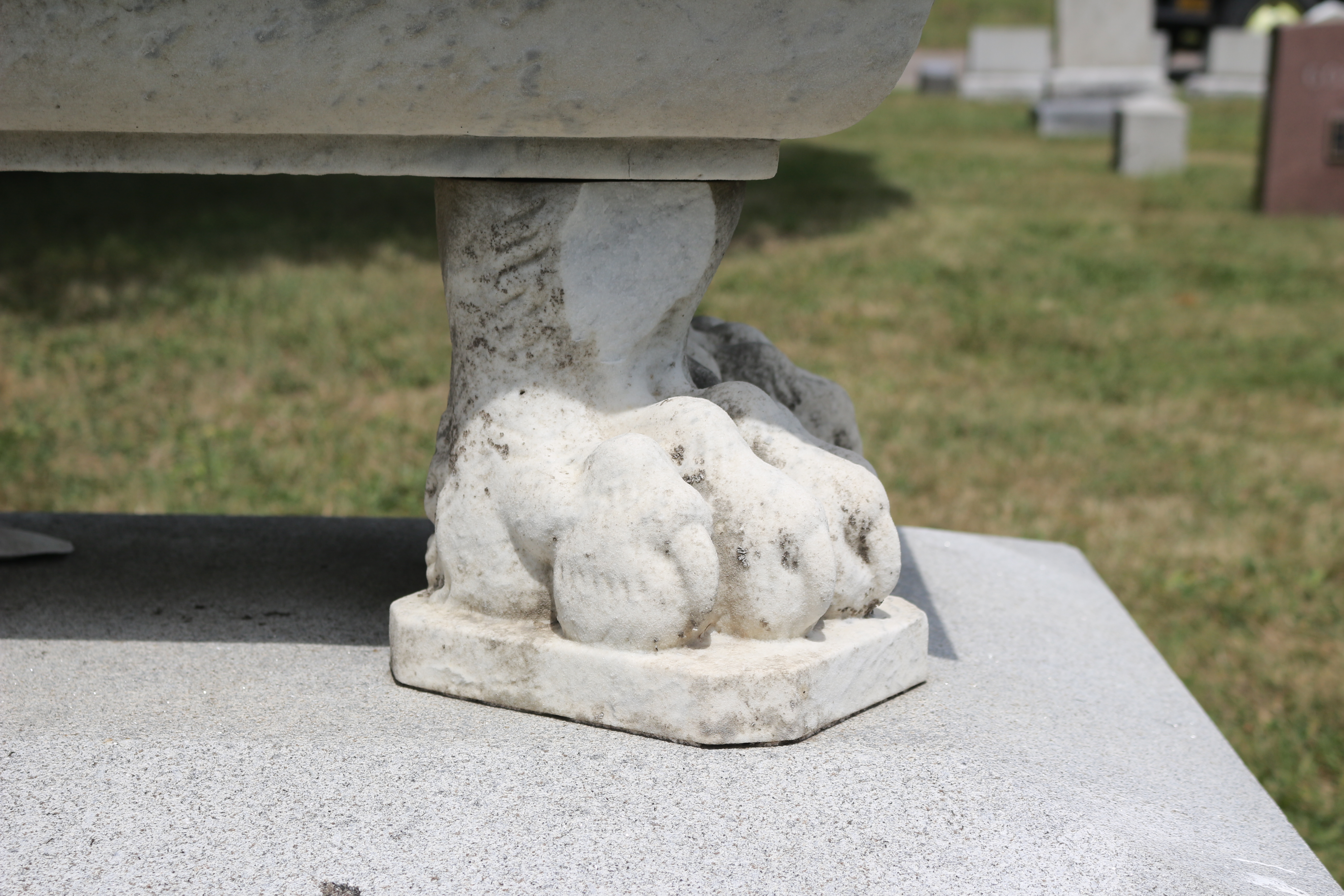 This powerful monument was designed to project strength. Holding up the tomb are four large meaty lion paws. The lion has long been a symbol of bravery, strength, and majesty. In popular culture, the lion is known for its power and is called King of the Jungle and King of the Beasts. The lion is often used as a royal emblem, found eight times in the Royal Arms for the late Queen of England alone!