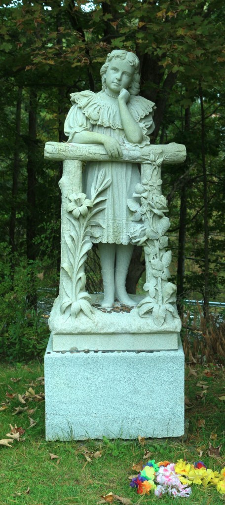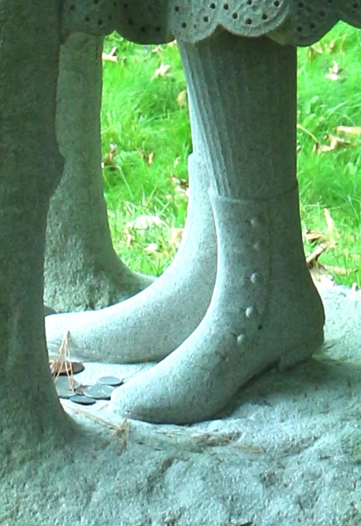 According to a brochure published by the cemetery, “Local legend has it that the Pitkin family initially refused to pay for the statue because a button was missing on one of her boots.”  At closer inspection of the photograph, the Pitkins realized that indeed, the left shoe that Margaret was wearing in the photograph was missing the button and they immediately paid the debt.
