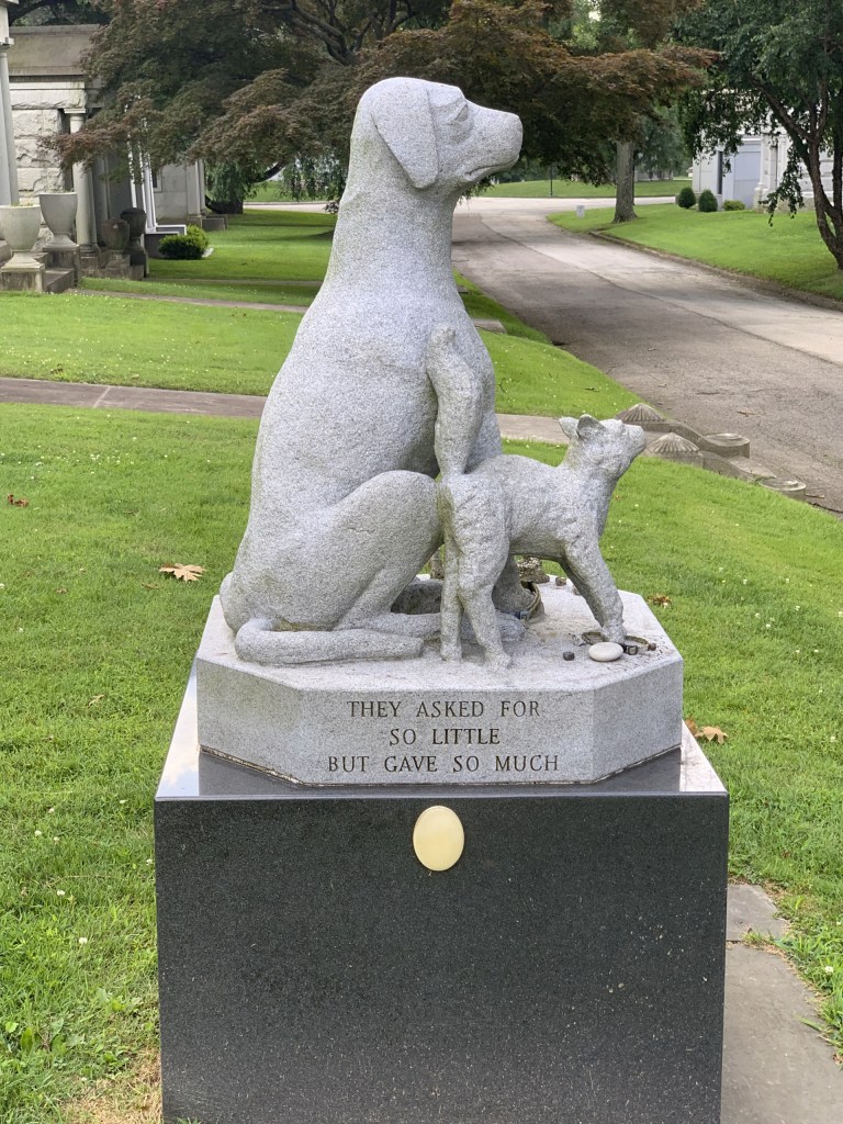 In West Laurel Hill Cemetery in Bala Cynwyd, a suburb of Philadelphia, stands the monument of Lee A. Holloway. Above the inscriptions, “More than just friends,” and “They asked for so little but gave so much,” stand the sculpted granite figures of a cat and a dog.