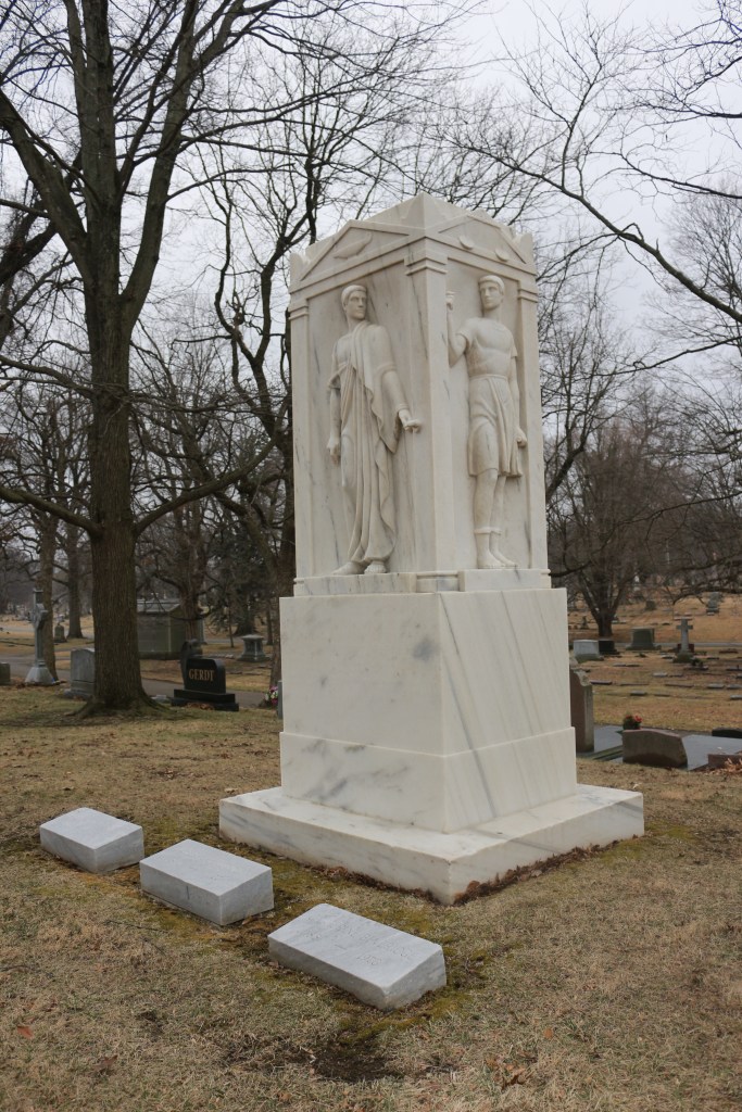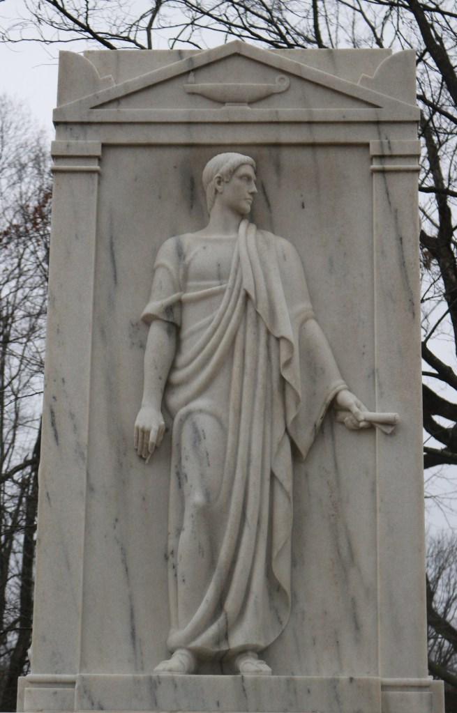 In 1942, Catherine Beveridge, second wife of Albert Jeremiah Beveridge, commissioned famed sculptor John Clements Gregory (1879 – 1958) to create a funerary sculpture to represent four stages of Beveridge’s life. Gregory sculpted a towering white marble monument with four classical figures to represent Beveridge as a Student, Lawyer, Senator, and Historian.