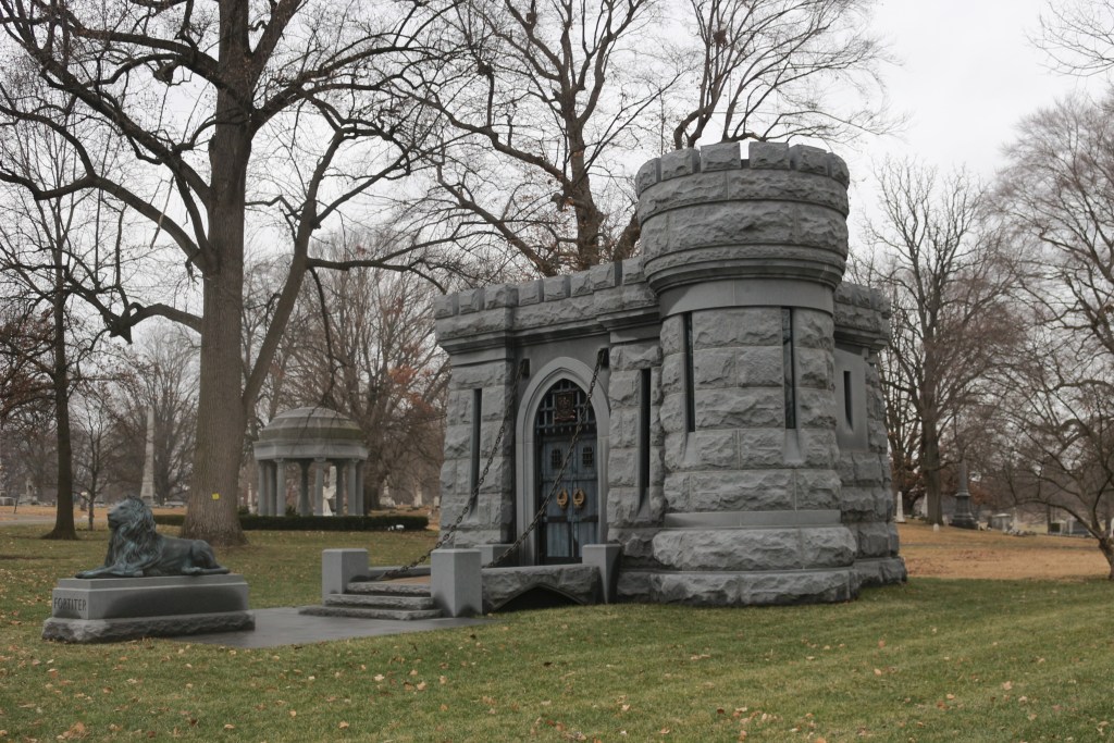 In the case of the McAllister Mausoleum in Crown Hill Cemetery in Indianapolis, Indiana, a man’s mausoleum is his castle—literally—complete with castellated tower and battlements and a drawbridge!