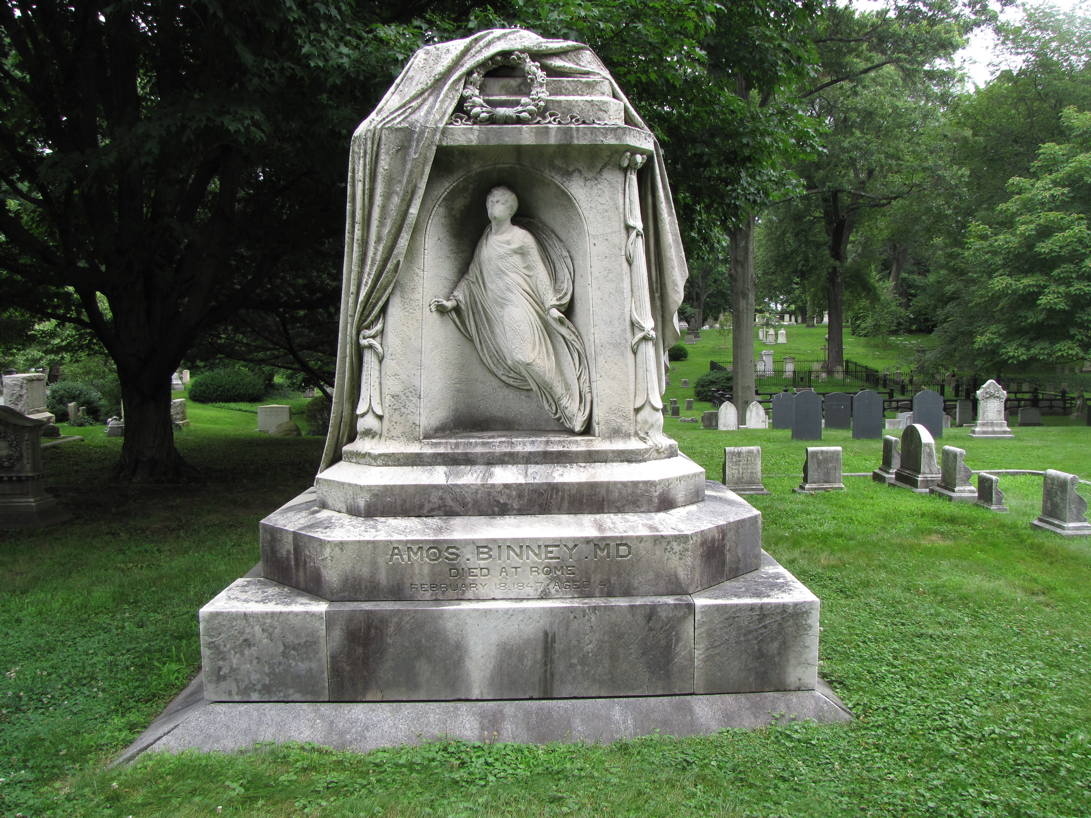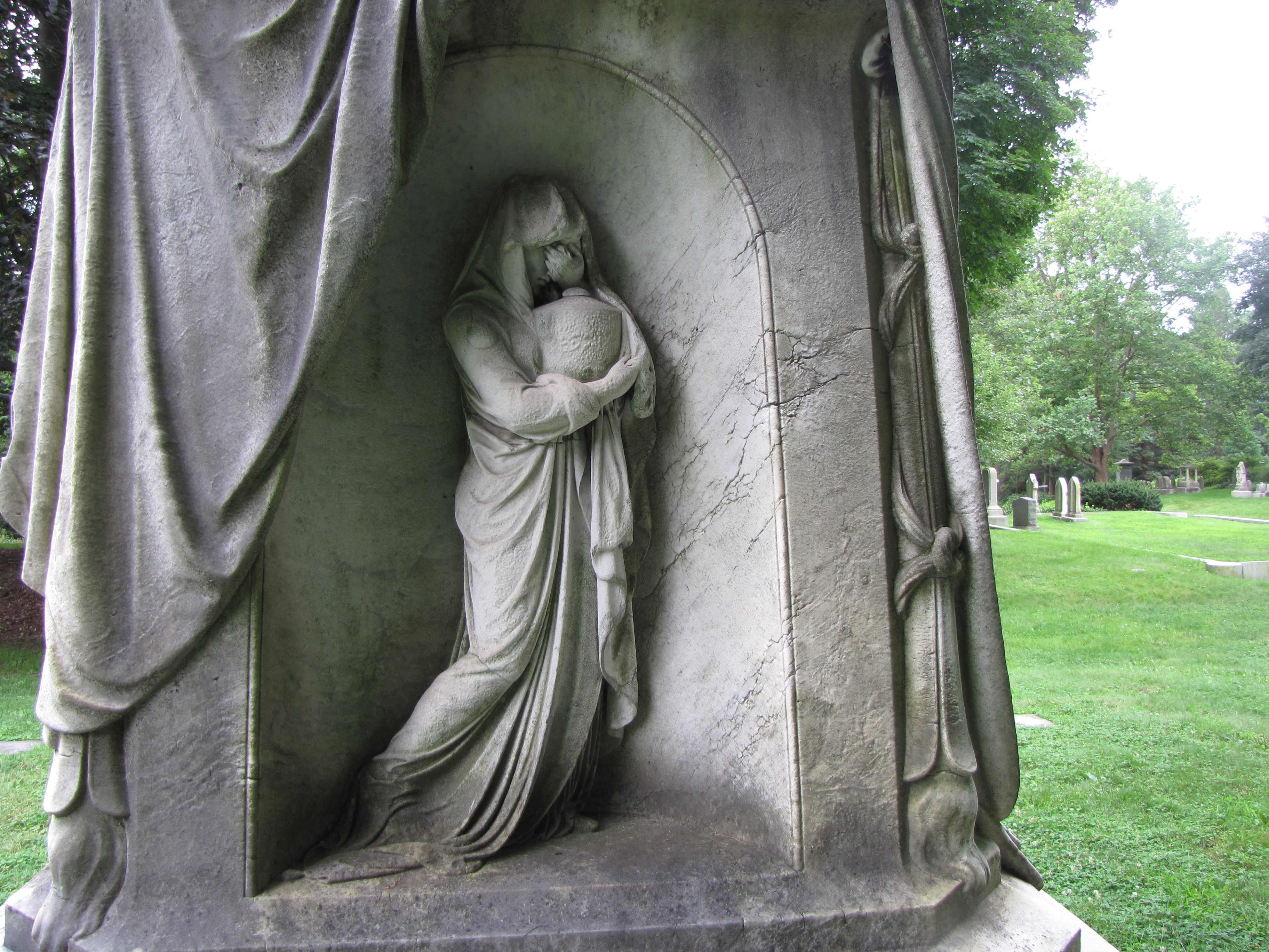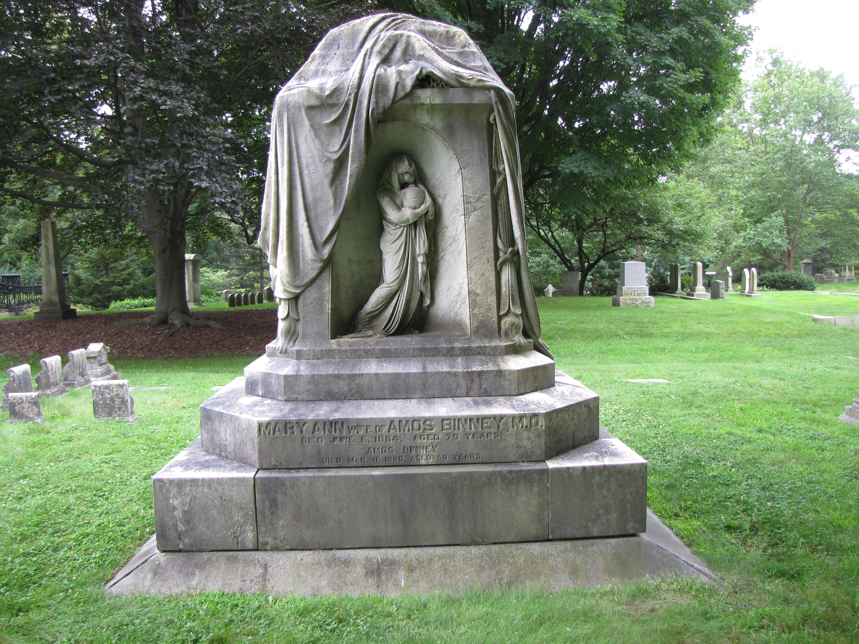 In addition to the metal markers next to gravestones that signify Odd Fellows membership, gravestones are also carved with the symbolism of the association. On this monument for Stephen and Mary Hoskin in the Fairmont Cemetery in Denver, Colorado, is the all-seeing eye and the three links with the letters F L and T.