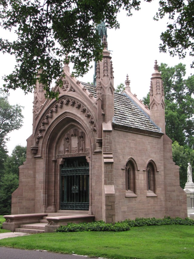 The bronze sculpture commissioned for the Spencer family monument is executed in a lyrical neoclassical style. The mourning figure is depicted seated wearing classical drapery. The figure is leaning against an urn with her head bent downward in a pose of grief and sorrow. In one hand she is holding a mixed flower bouquet that lay in her lap also pointing downward. The urn was an almost ubiquitous 19th Century symbol found in nearly every American cemetery. The urn was a Greek symbol of mourning, fitting for a neoclassical designed monument. The urn also represents the body as the container or vessel for the soul. The bouquet of flowers may represent the transient nature of life itself but often the condolences to the grieving.
